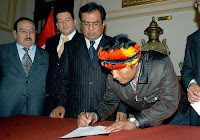 Lima, Perú (Spacio Libre/Andina).- Un acta de entendimiento para poner fin a las protestas en la selva suscribieron hoy el presidente del Congreso, Javier Velásquez Quesquén, y el dirigente de la Asociación Interétnica de Desarrollo de la Selva Peruana (Aidesep), Alberto Pizango.