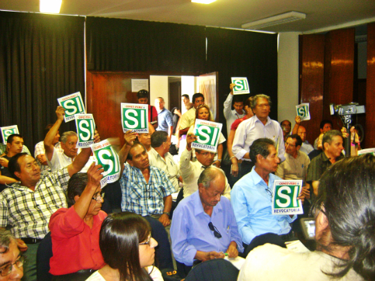 Según Rau Rau, una parte de los transportistas aceptó unirse a la Reforma del Transporte porque fueron «coaccionados y engañados». La amenaza del Banco Mundial sería una de las maneras en las que el señor Perfecto Victor Ramírez, regidor de la comuna limeña y presidente de la comisión de Transporte del municipio, habría logrado -según Rau Rau- amedrentar a los transportistas de 30 consorcios que ahora están convencidos de apoyar el «No».