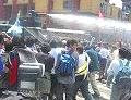 Lima, Perú (Spacio Libre).- Un grupo de estudiantes de la Universidad Nacional Mayor de San Marcos (UNMSM) se enfrentaron a integrantes de la policía e incendiaron un rochabus en la puerta N° 3 de dicha casa de estudios, mientras se preparaban para protestar por la construcción del «by pass» de la avenida Venezuela, que según el proyecto de la Municipalidad de Lima, les arrebata un porcentaje importante de terreno universitario.